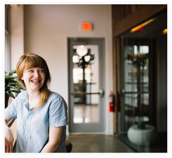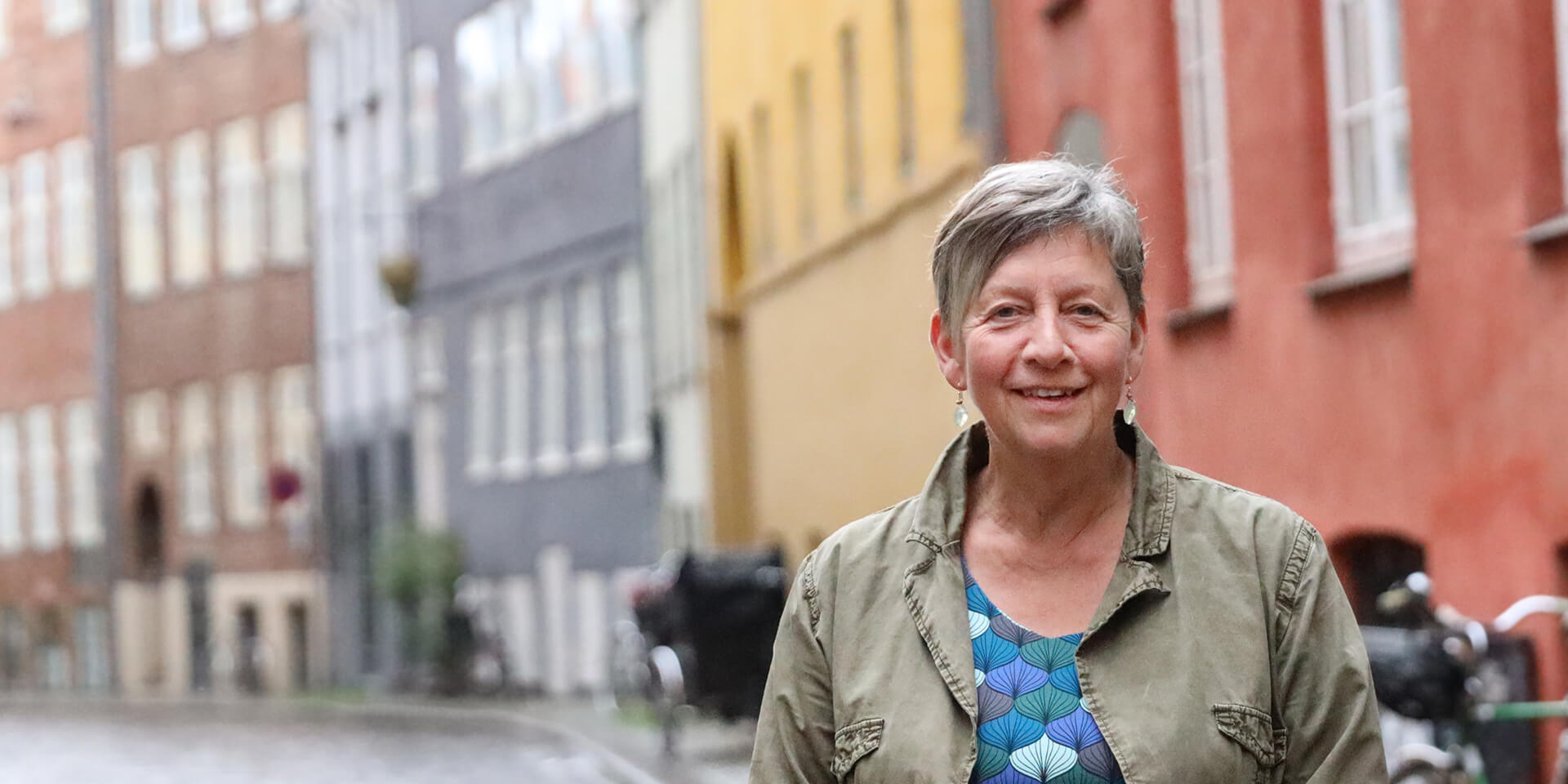Dette er en hero section, med en stor overskrift. Den har ligeledes en hvis boks med sandfarvet baggrund